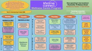 LIFETIME CONNECT is excited to have two amazing locations for our much loved WELLNESS CENTRE. You can join us at 11 Kent Street Nambucca Heads or 78 Wallace Street in Macksville. See our fabulous Wellness Centre Program below to select the best location and activities to suit your lifestyle.